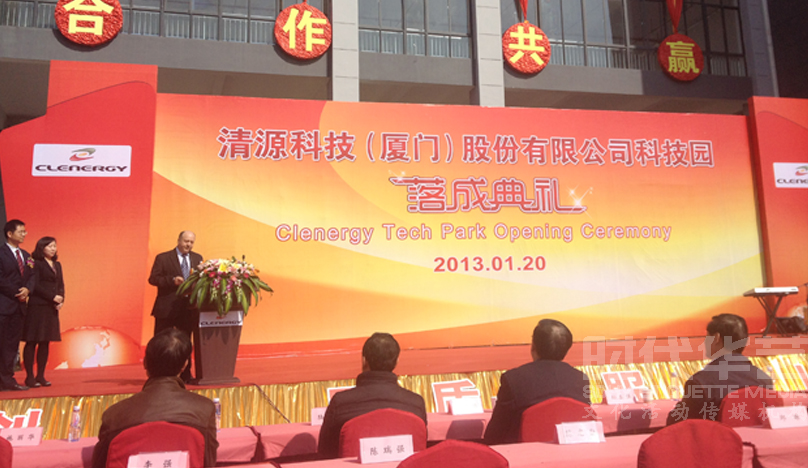 2013年1月20日,经过两年的紧张施工,厦门光伏产业园区清源科技园今日正式落成。厦门火炬高新区管委会书记黄如欣、厦门经济发展局局长柯志敏、厦门湖里区区长张毅恭、厦门翔安区副区长陈佳锻、厦门大学能源研究院院长李宁、厦门上市公司协会会长陆建新、副秘书长王兴江、常务副会长兼秘书长王桂洲等领导嘉宾、清源科技投资伙伴以及清源科技全球团队代表共同出席仪式,《人在囧途之泰囧》制片人陈祉希作为特别嘉宾主持落成典礼。