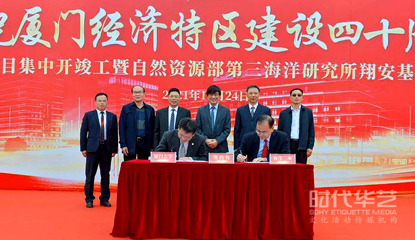 12月24日,作为庆祝厦门经济特区建设四十周年40个重大项目之一,自然资源部第三海洋研究所翔安基地开工建设。仪式上,海洋三所与厦门大学签署了科教融合共建协议。厦门市人大常委会党组副书记、副主任刘育生,海洋三所所长蔡锋,厦门大学党委常委、副校长江云宝,厦门大学戴民汉院士,厦门市海洋发展局局长曾东生,翔安区政府区长李毅,集美大学校长李清彪,自然资源部海岛研究中心主任张海峰等出席仪式。